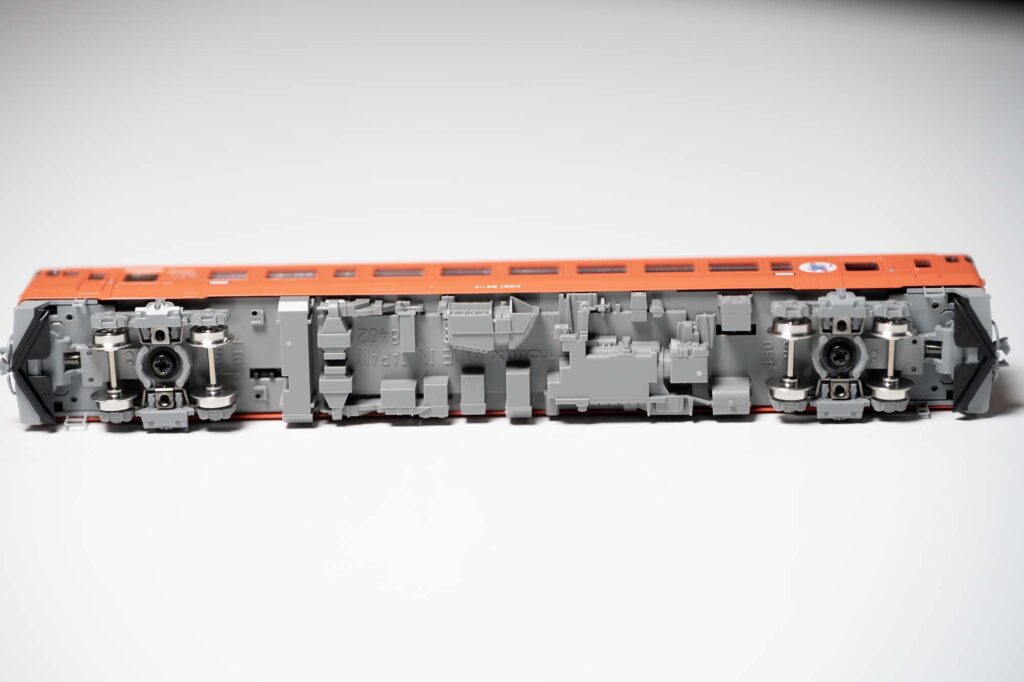実感的な連結部・床下機器、塗色の違いで趣の出る2連仕様。