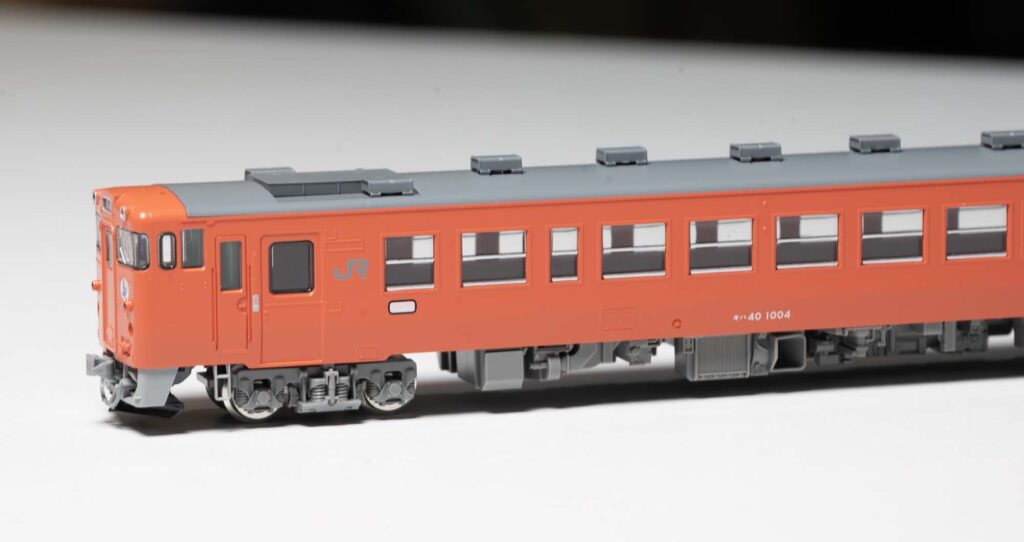 実際には気動車の車体はかなり汚れているので、工場出荷時の塗装仕上げでは今一つ気持ちが上がらない。あの発車時の轟音と匂いをイメージ出来るかどうかもポイント。俄然サウンドカードに興味が沸いてくる。トレーラー(首都圏色)の床下を見ると重心軸上にぶら下げられたエンジンが表現されていてグッド。
