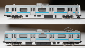 実感的な連結部・床下機器、塗色の違いで趣の出る2連仕様。
