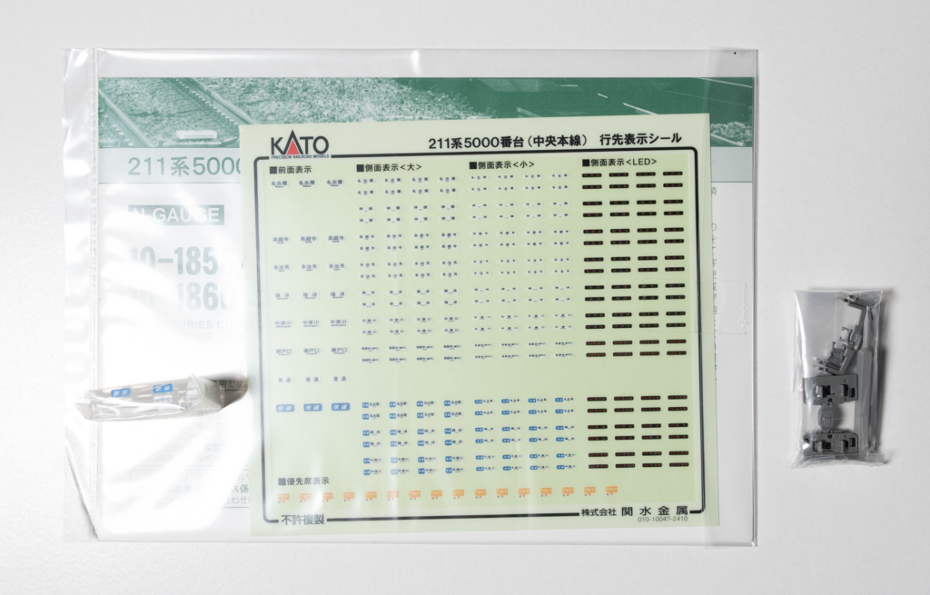 紙ケースに入るのは車両と付属品。行先表示シールをデザインナイフで切り出して貼るのは数年先であろう。中央西線では最大両数は10。あまり気にせず11連にして走らせてもホビーだからいいよね。