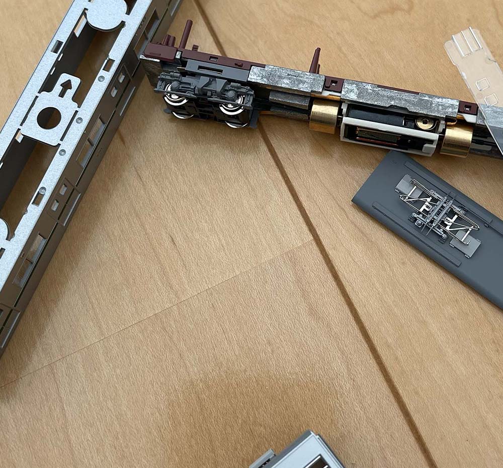 プラスチックの高騰もありこの内部構造で現状の価格は安いと感じました。昔の車両は部品の組みに大分遊びがあって、分解しても簡単にサクサク組み上がりましたが、今回先頭車の蓋かぶせはかなり時間を要しました。滑らすようにねじ込むとかマジですか精緻にも程があります。