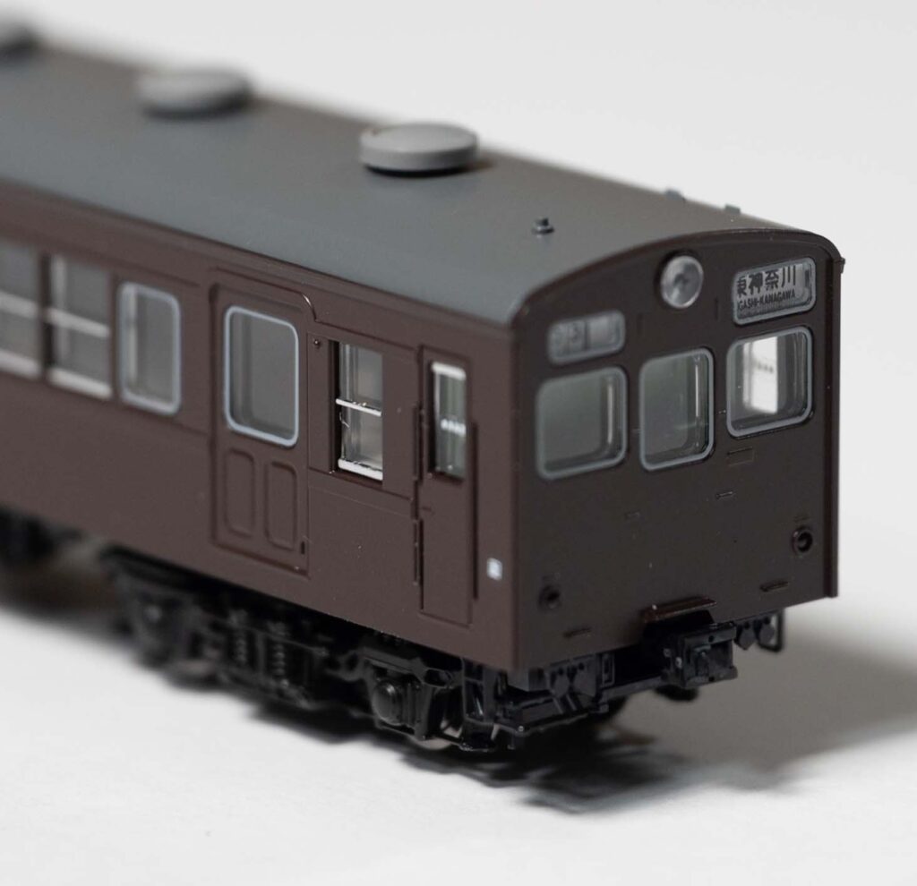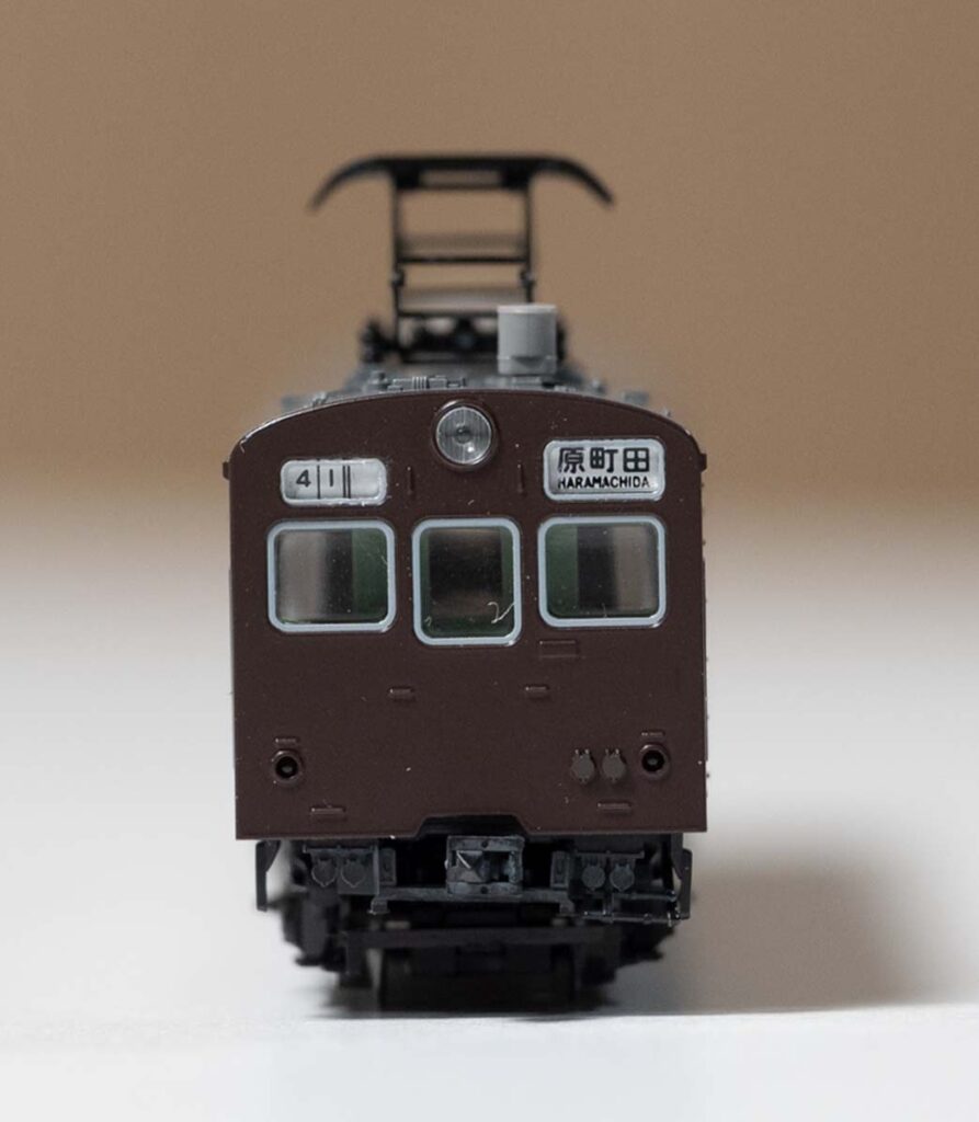 前頭部の見栄えの素晴らしい行先方向幕は選択式で小さいパーツなので装着が大変。ほとんどの細かい車体表記も転写式シールで繊細さを要求される作業に。この辺りはKATO製品は貼付済の事が多いので嬉しいですね。そのコストをTOMIXは他に回して圧倒的なディテールを獲得しているのでしょうか。