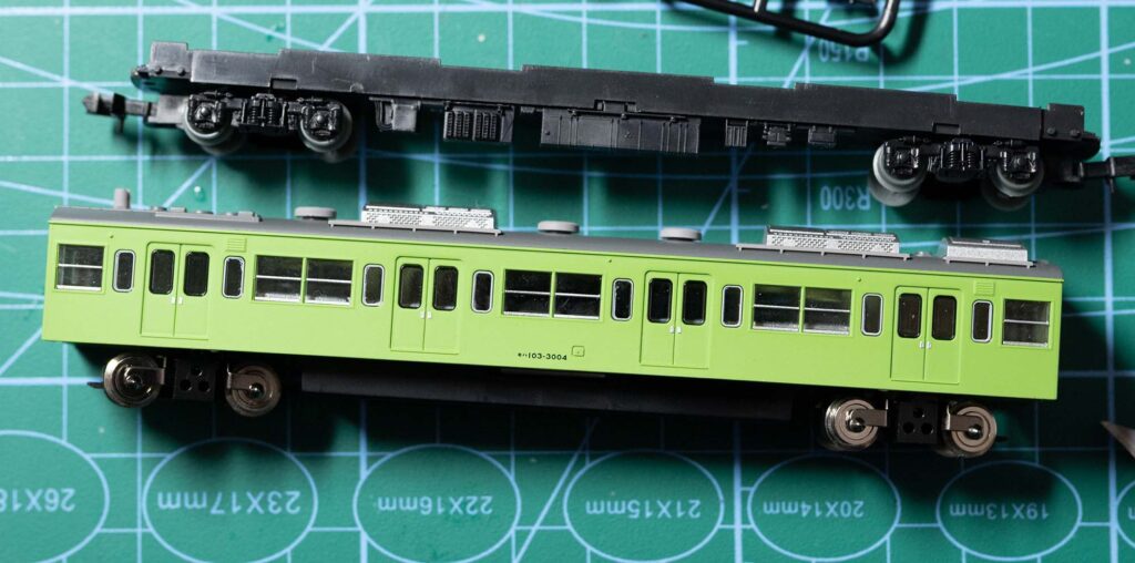 仕上がった編成に嬉しくなりますが車体各部の精度等、TOMIXのラインナップには遠く及びません。しかし細かい色差しや殆どの車体表記が貼付済のボディに関しては、かなり雰囲気が良いなと感じます。「コレはこれであり」という事ですね。