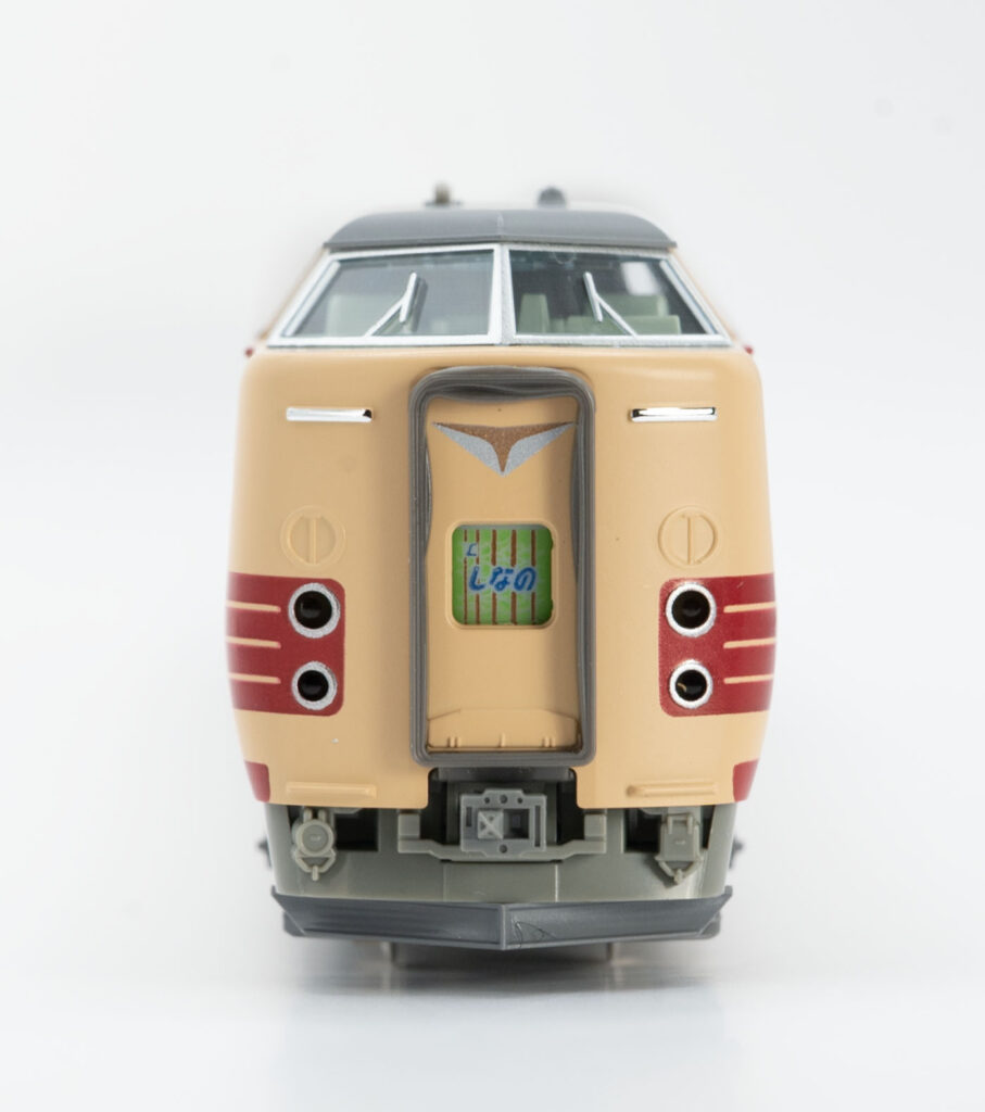 「台車・床下機器のグレー化、側面JRマークの小形化が行われ、前面貫通ホロが常時取付となった頃の神領電車区所属編成を製品化」(KATOホームページより) とはマニアック。ホロつき先頭車は鉄道雑誌で見ていた頃はあまり好きではなかったのですが今は好物ですね。